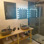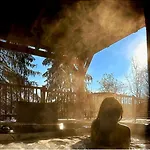 Mobilados com piso parquet, varanda e local de descanso estão equipados com sofá. O quarto inclui casa de banho separada, banheira de hidromassagem e chuveiro, secador de cabelo e roupões.
